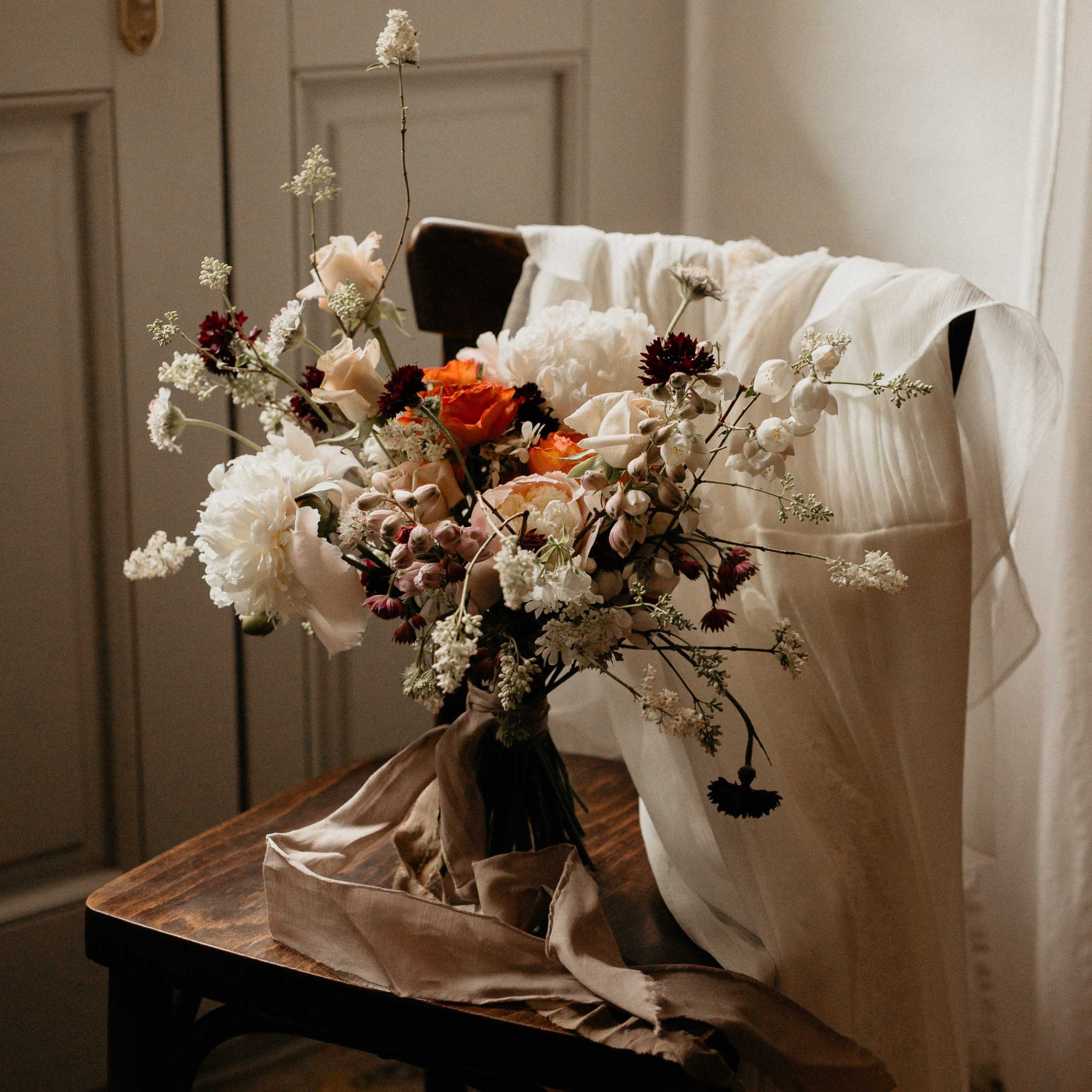 A nyár, de leginkább az ősz beköszöntével a sötét tónusú csokrokban a dália uralkodik. Angol rózsával, lisianthussal, tollbugával, és ördögszemmel is szeretjük elkészíteni ezeket a csokrokat. Különféle érdekesebb növényekkel kombinálva, mint például a borsfa ágai, a festett eukaliptusz vagy épp a bíbor színű cserszömörce is mélyebb tónust ad a csokroknak.