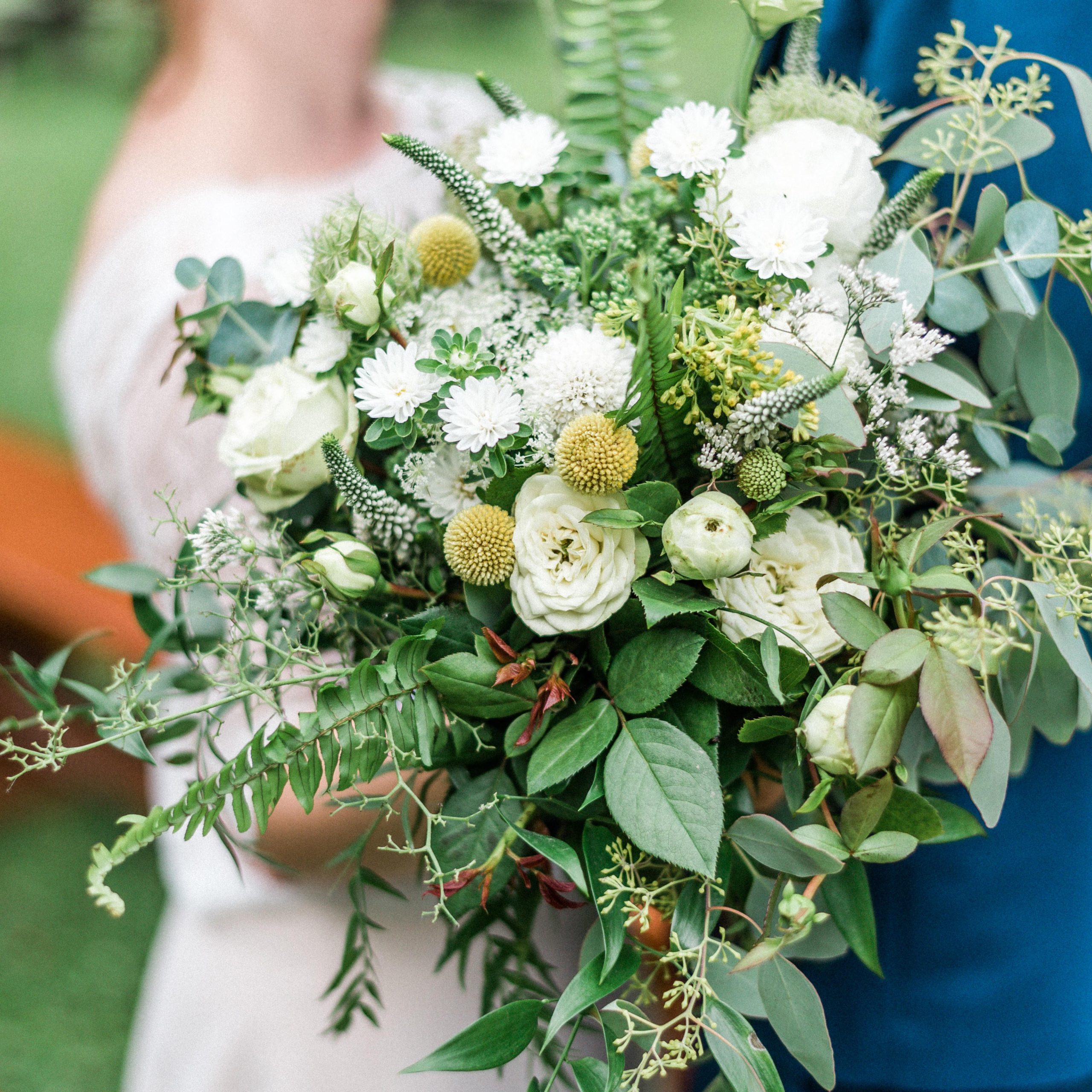 A csokrokban a kerti és vadvirágok laza kompozíciót alkotnak. A kisebb, játékos méretű virágfejek mellett egy-egy nagyobb kerti rózsa, dália adja meg a csokrok karakteresebb elemit.